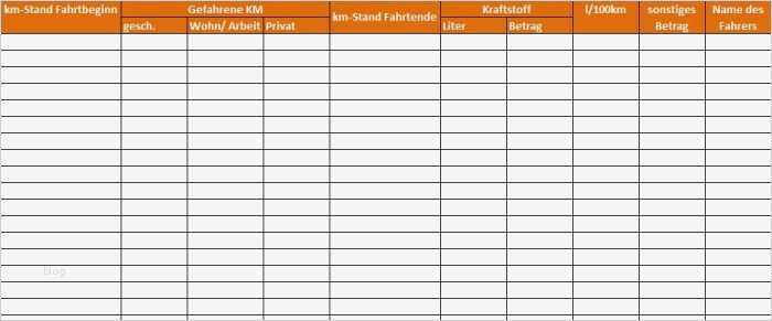 Cool Fahrtenbuch Vorlage Excel Kostenlos