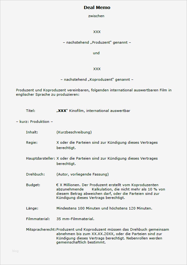 Film Script Vorlage Schön Deal Memo Vorlage sofort Zum Download