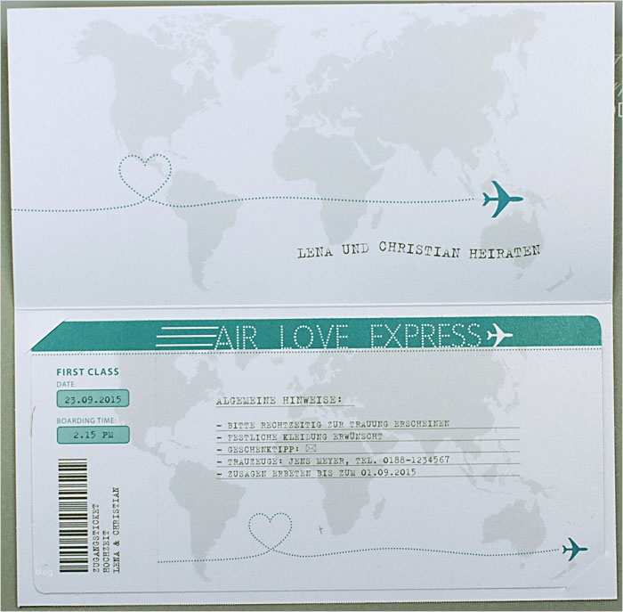 Flugticket Vorlage Geschenk Fabelhaft Hochzeitskarte Flugticket Weltkarte Airline Ba