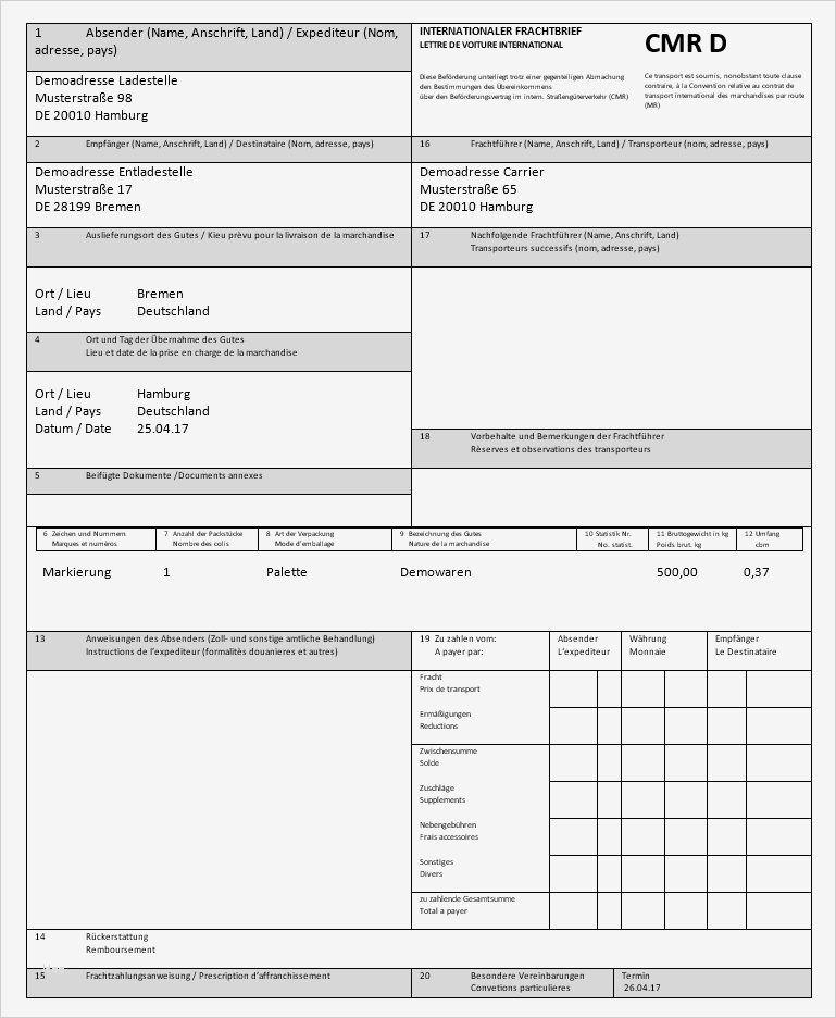Ideen c m r fairlog c m r 1 absender diese beförderung unterliegt trotz einer gegenteiligen ab machung den bestimmungen des Übereinkommens über den beförderungsvertrag im internat cmr blanko download peters spedition internationaler frachtbrief lettre de voiture international sendungs ladenummer 1 frachtführer name anschrift land transporteur nom adresse pays download excel frachtbrief vorlage themaga excel frachtbrief vorlage anyform formularsoftware der anyform formularsoftware download macht das erstellen von formularen kinderleicht