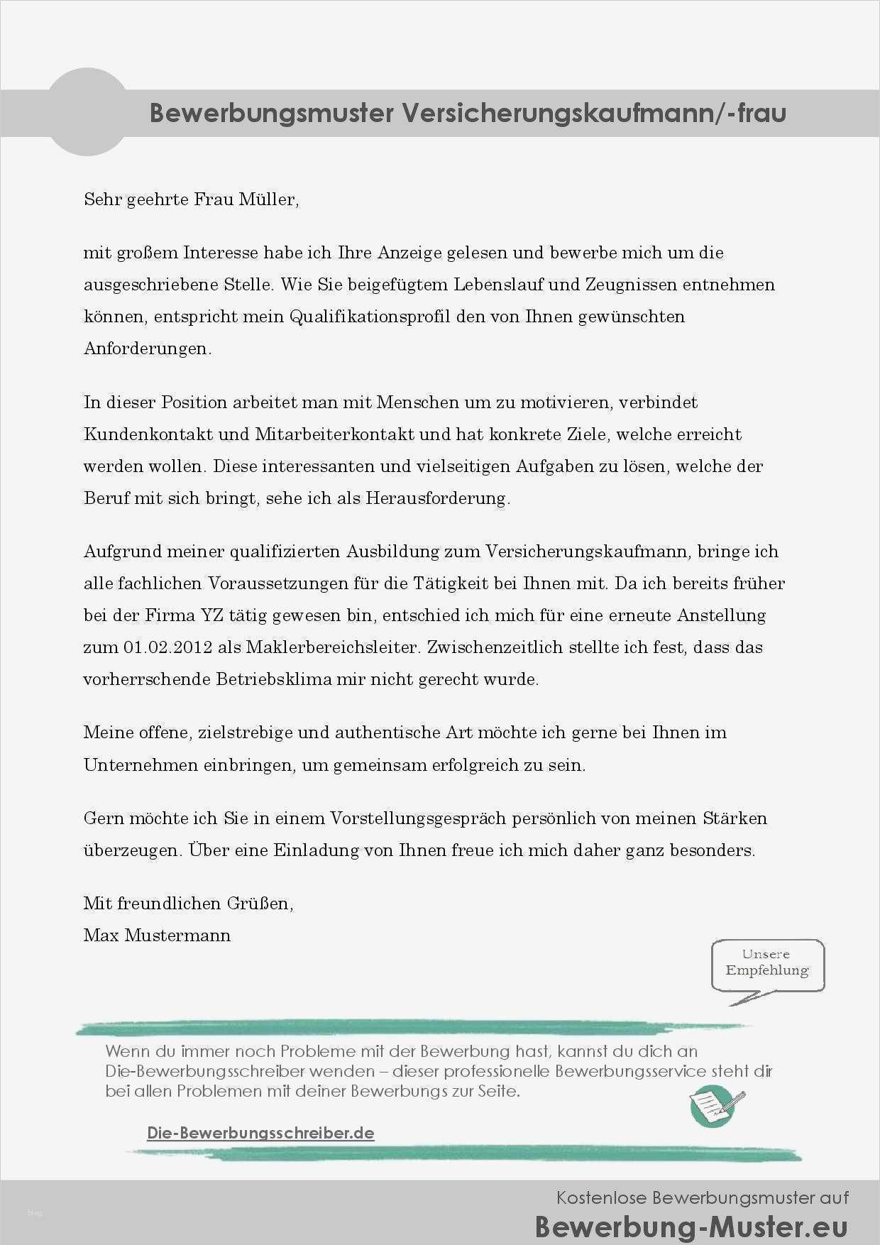 Frauen Anschreiben Vorlagen Bewundernswert Kostenloses Bewerbungsmuster Versicherungskaufmann Frau