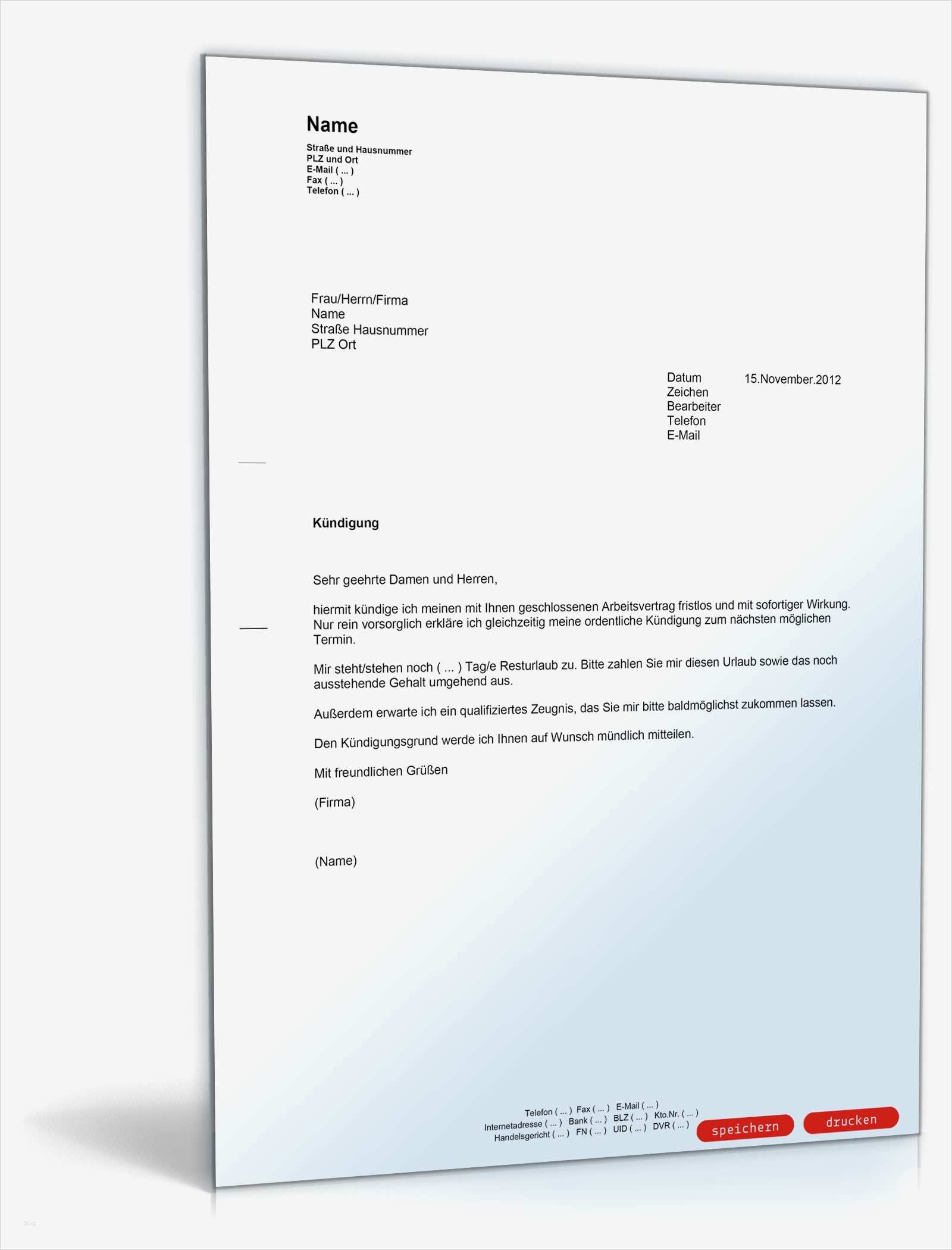Gut Fristlose Kündigung Arbeitnehmer Vorlage