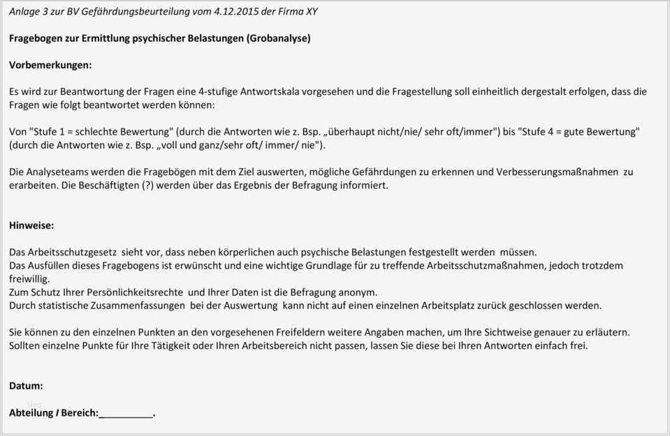 Gefährdungsbeurteilung Arbeitsmittel Vorlage Elegant Anlage 3 Zur Bv Gefährdungsbeurteilung Vom Der Firma Xy