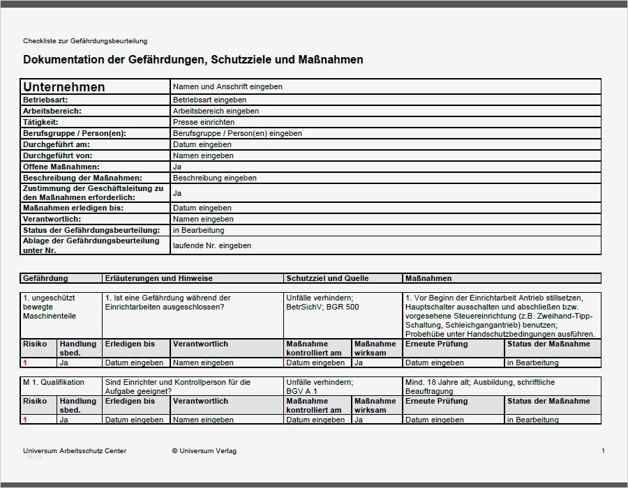 Bewundernswert Gefährdungsbeurteilung Instandhaltung Vorlage