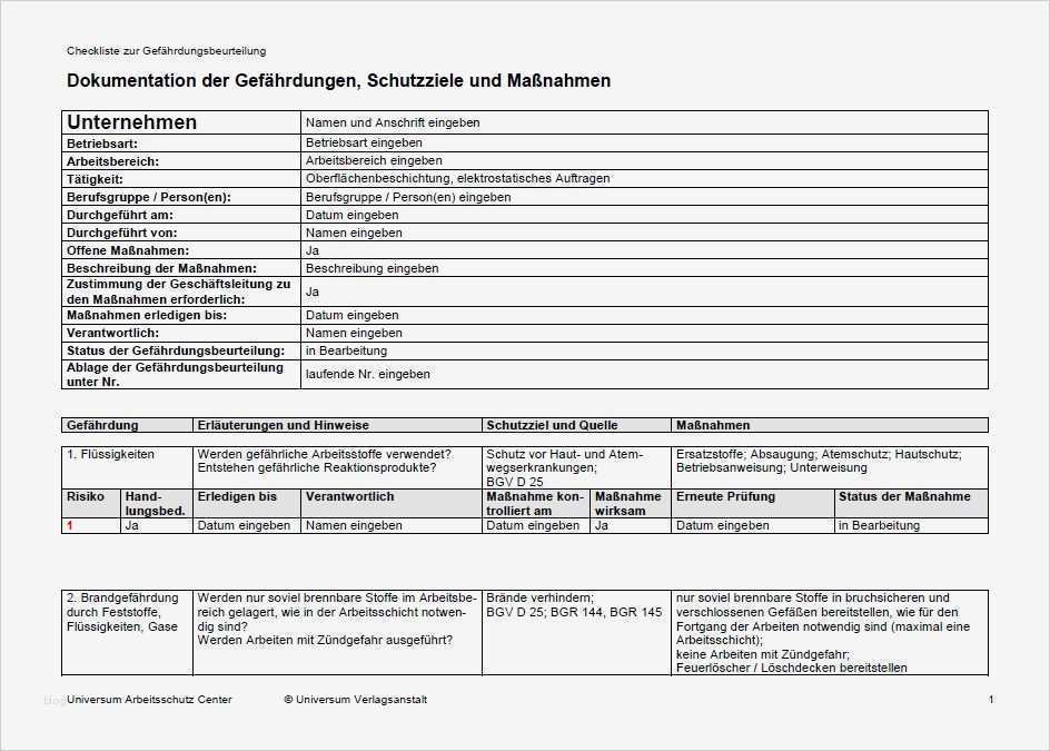 Bewundernswert Gefährdungsbeurteilung Instandhaltung Vorlage