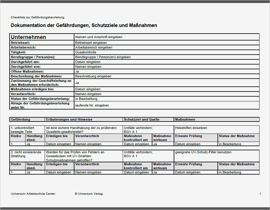 Wunderbar Gefährdungsbeurteilung Vorlage