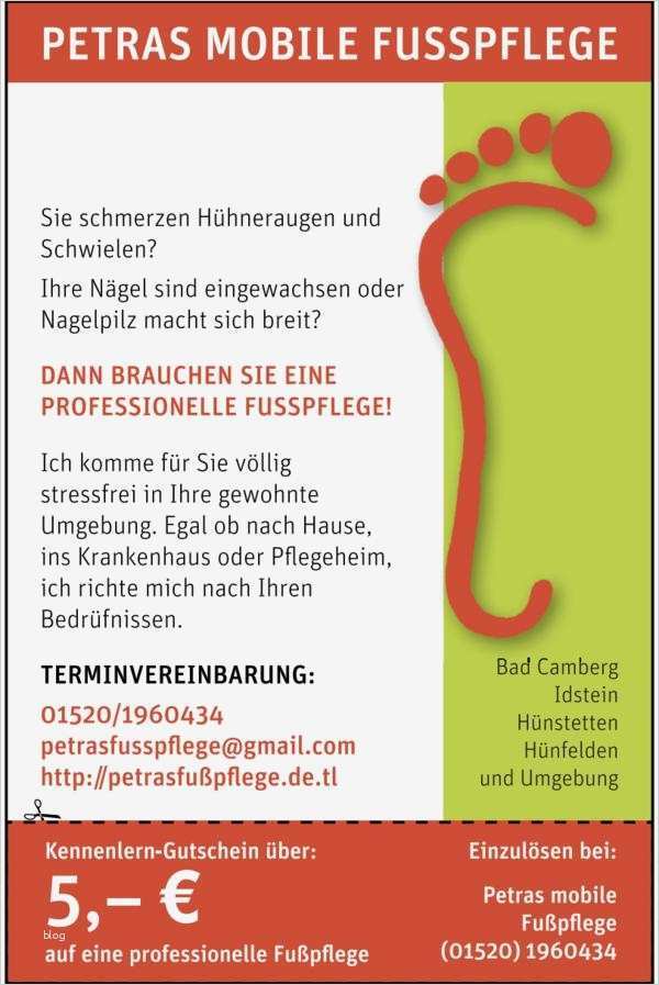 Gutschein Fußpflege Vorlage Kostenlos Angenehm Petras Mobile Fußpflege Rheingau Taunus Kreis In
