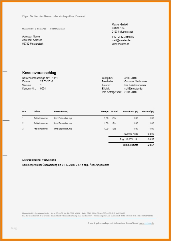 Handelsrechnung Vorlage Word Hübsch 9 Angebot Muster