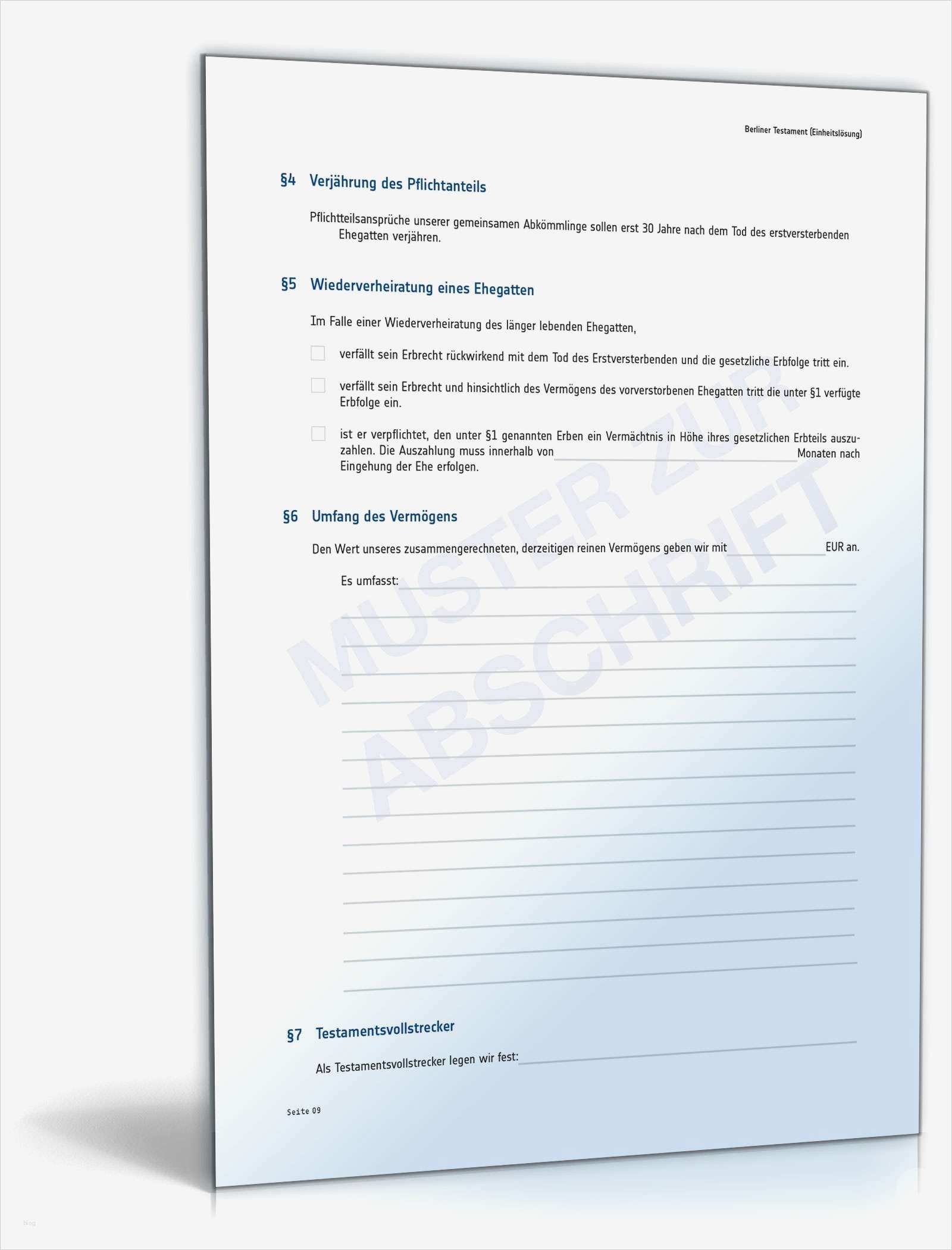 Handschriftliches Testament Vorlage Elegant Berliner Testament Vorlage Für Handschriftliches Testament