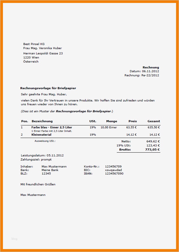 Inspiration Handwerkerrechnung Muster Vorlage