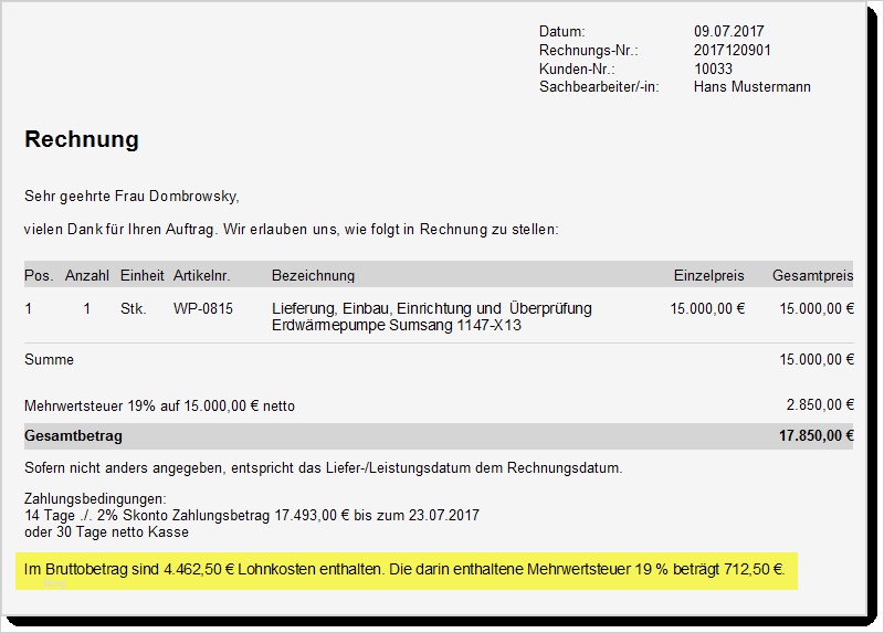 Handwerkerrechnung Muster Vorlage Wunderbar Lohnanteil Auf Rechnungen Ausweisen