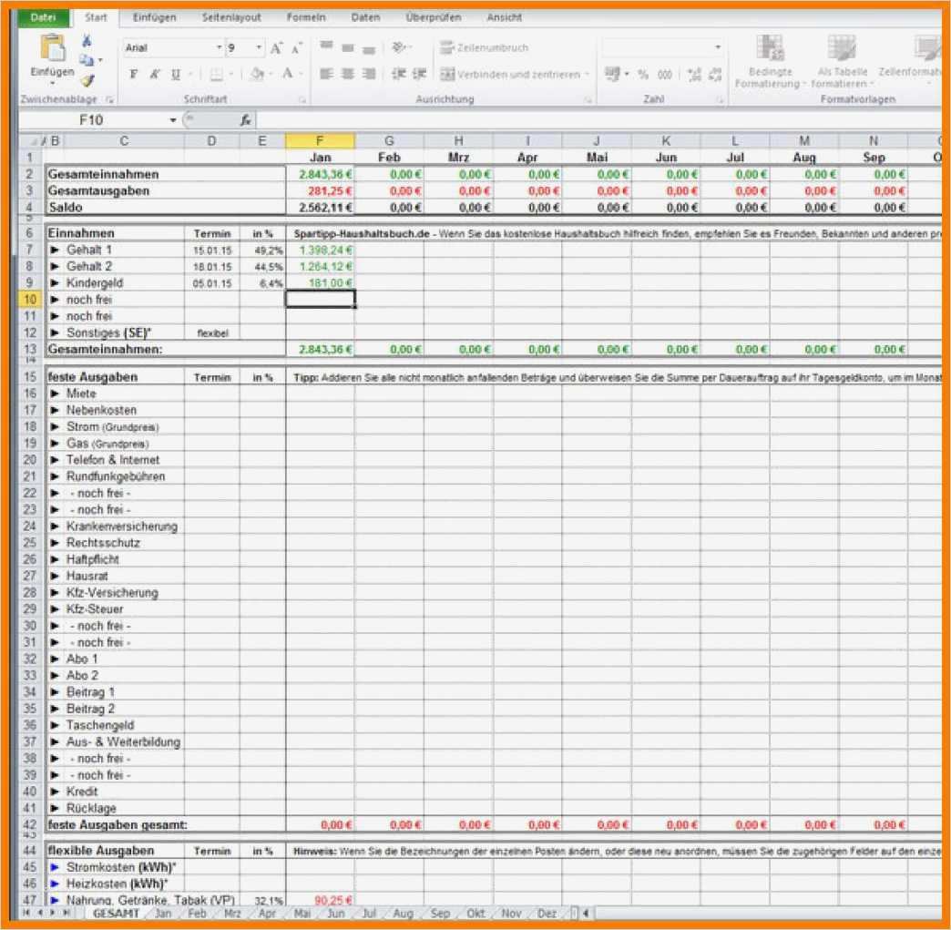Erstaunlich Haushaltsbuch Excel Vorlage Kostenlos