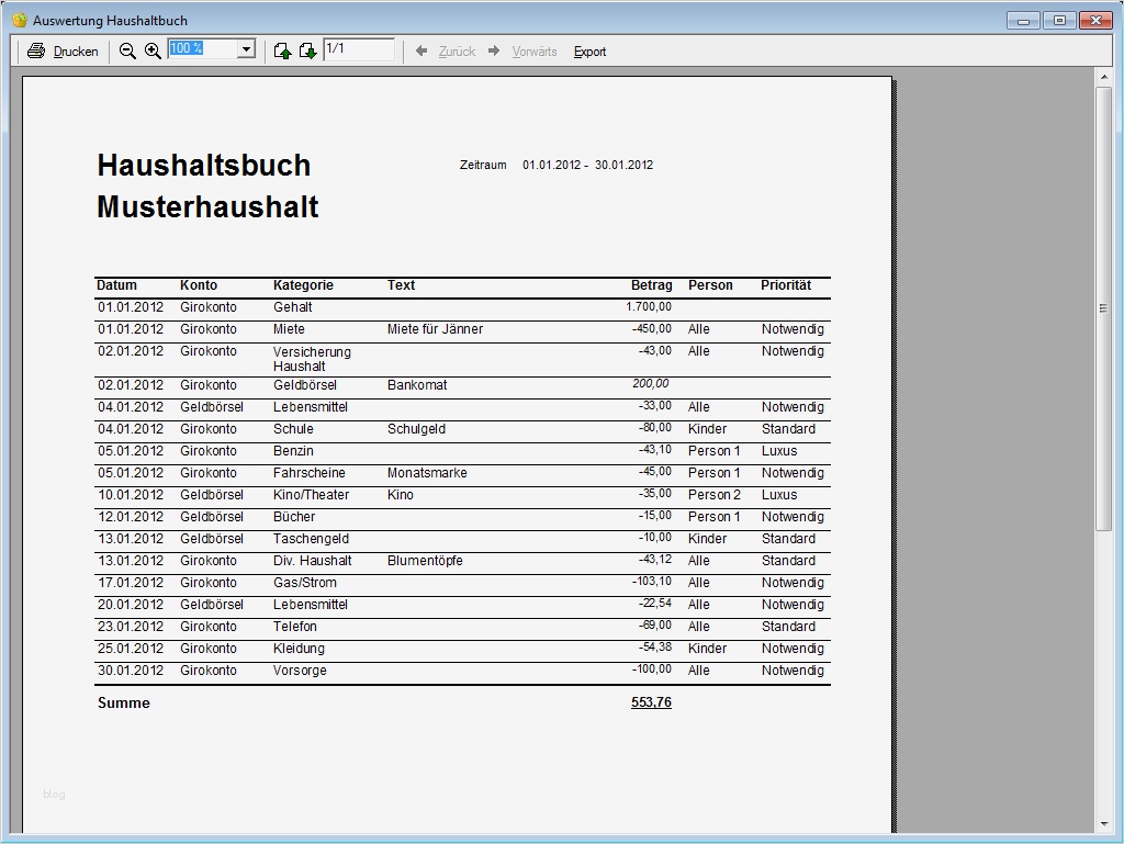 Erstaunlich Haushaltsbuch Führen Vorlage