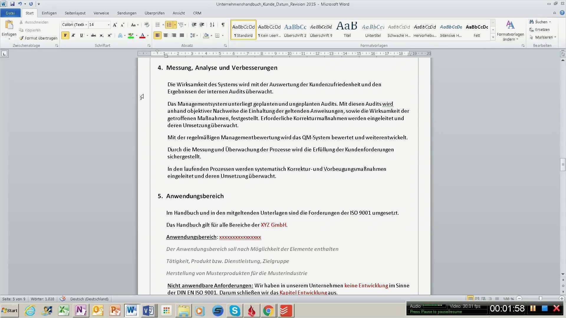 Erstaunlich iso 9001 2015 Handbuch Vorlage