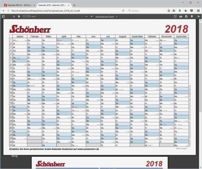 Erstaunlich Kalender 2018 Vorlage Drucken
