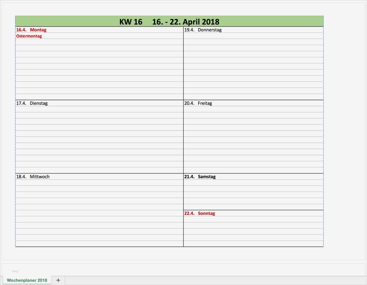Kalender 2018 Vorlagen Excel Schön Wochen Kalender 2018