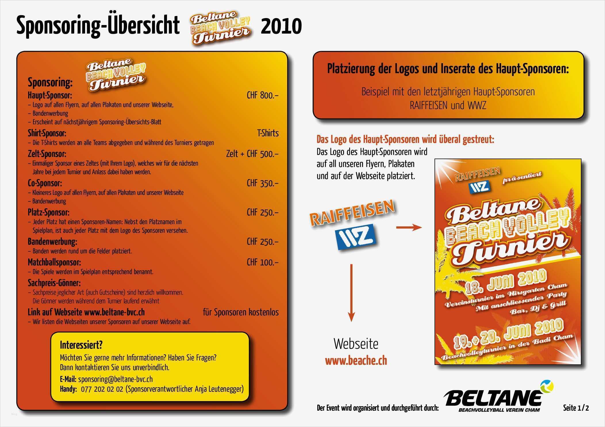 Konzept Sponsoring Vorlage Beste Beltane Beachvolleyball Verein Cham Zug