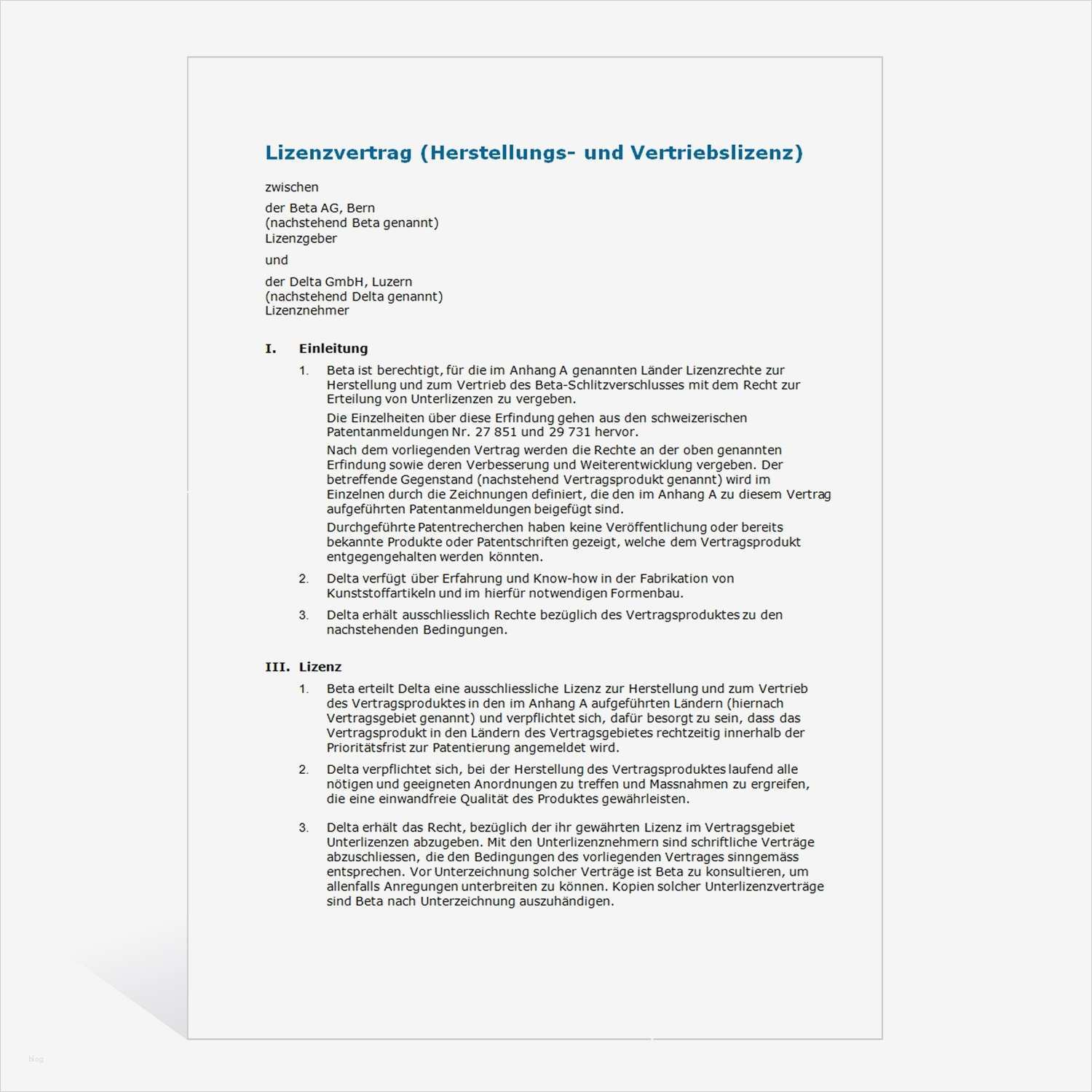 Kooperationsvertrag Vorlage Einzigartig Muster Lizenzvertrag Herstellung Und Vertrieb
