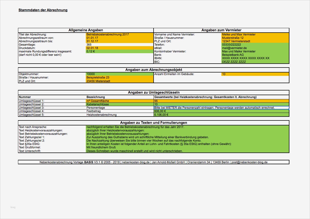 Wunderbar Kostenlos Nebenkostenabrechnung Vorlage