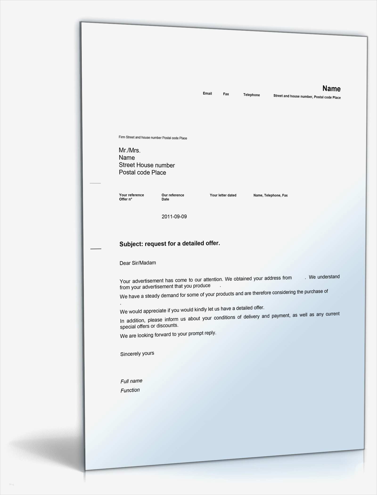 Kostenübernahme Hotel Englisch Vorlage Cool Angebotsanfrage Englisch Mustervorlage Zum Download
