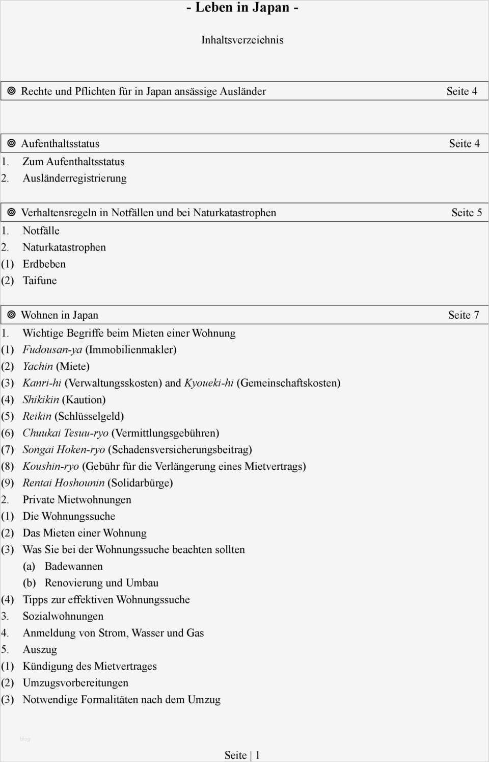 Kündigung Gas Umzug Vorlage Angenehm Leben In Japan Inhaltsverzeichnis Rechte Und