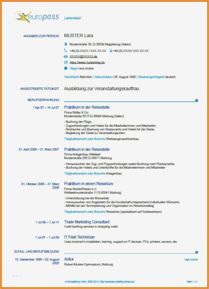 Lebenslauf Europass Vorlage Word Neu 12 Lebenslauf Europass