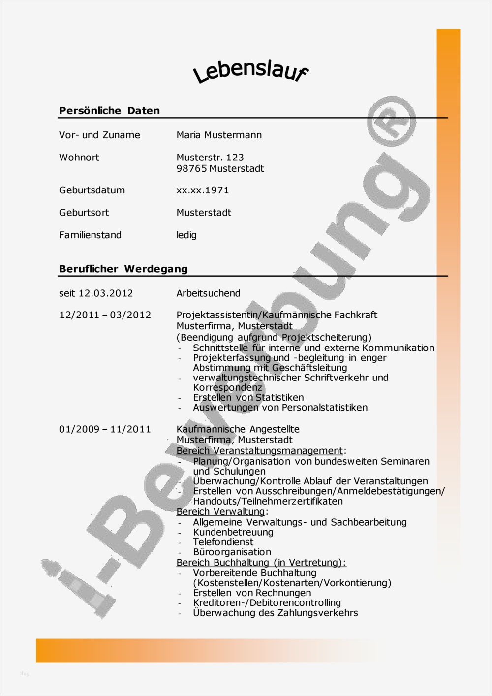 Wunderbar Lebenslauf Vorlage Bürokauffrau