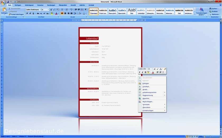 Angenehm Lebenslauf Vorlage Doc