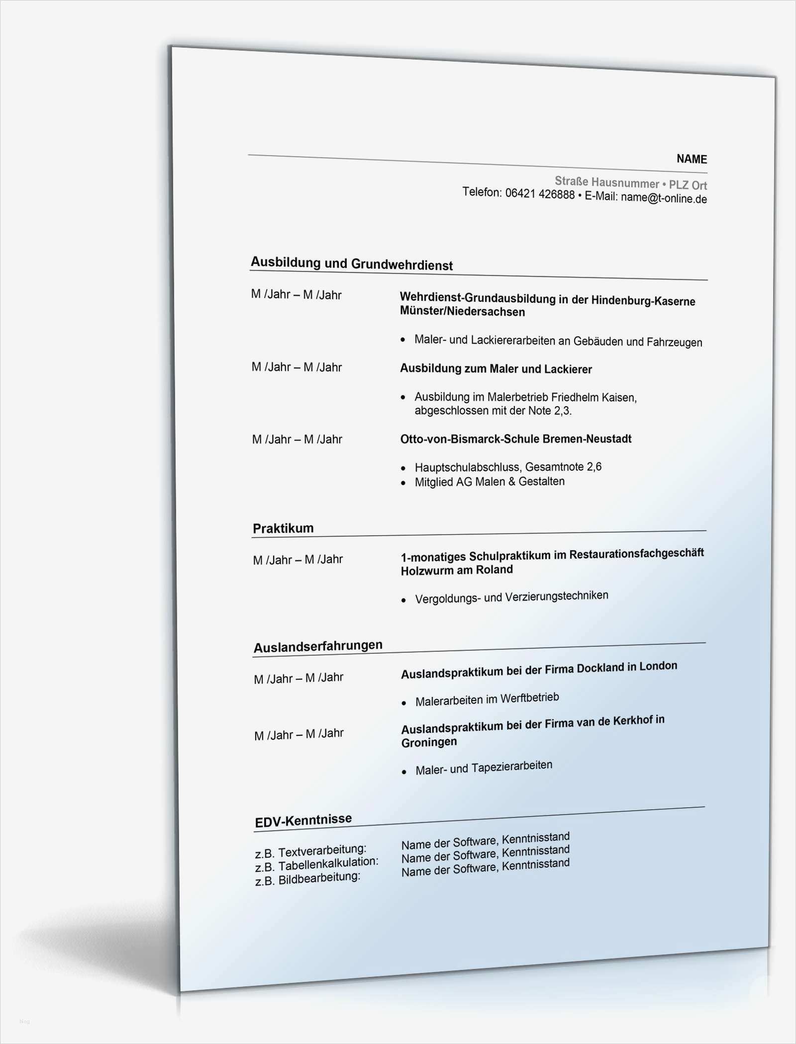 Lebenslauf Vorlage Doc Wunderbar Lebenslauf Maler Muster Zum Download