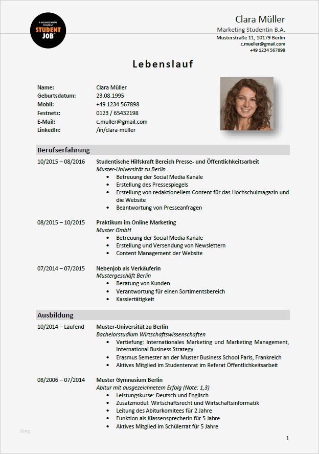 Galerie von Lebenslauf Vorlage Für Studenten Beste Musterlebenslauf