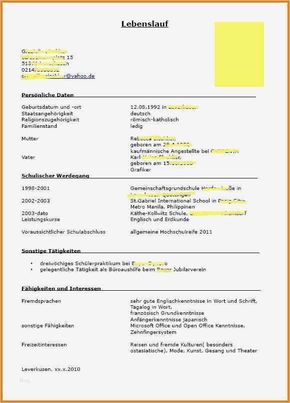 Galerie von Lebenslauf Vorlage Für Studium Erstaunlich 15 Lebenslauf Für Studium