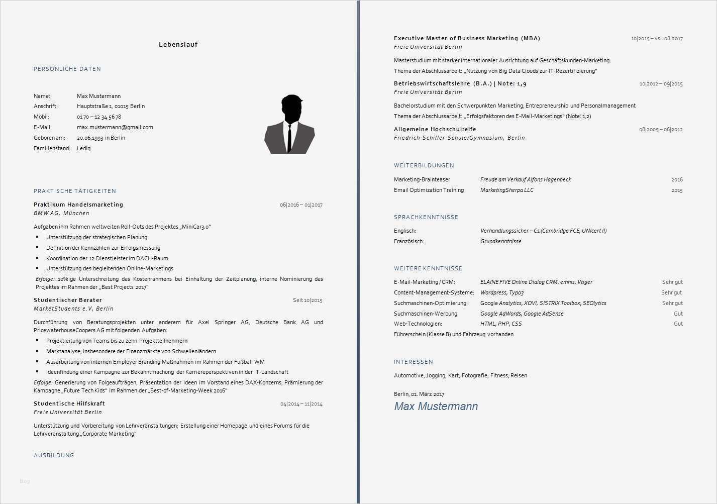 Neu Lebenslauf Vorlage Inhalt