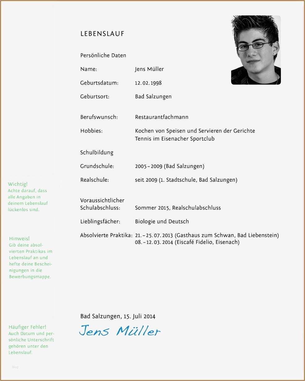 Genial Lebenslauf Vorlage Unterschrift