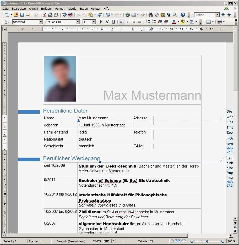 Erstaunlich Lebenslauf Vorlage Word 2010
