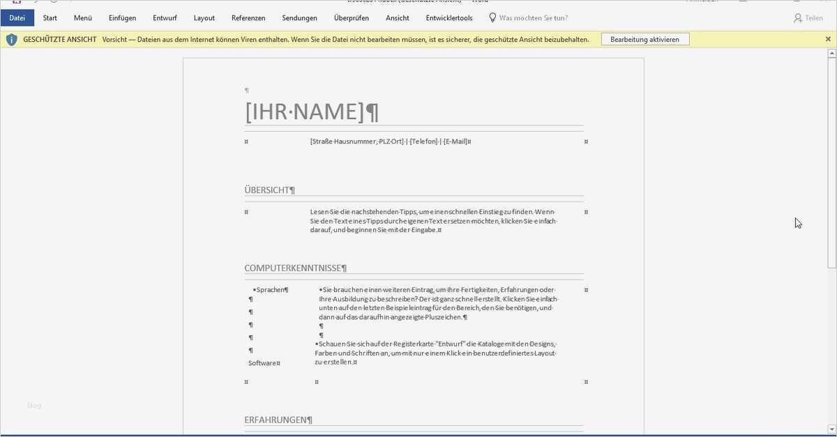 Erstaunlich Lebenslauf Vorlage Word 2013