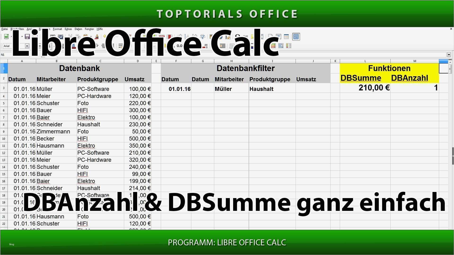 Libreoffice Calc Vorlagen Hübsch Dbsumme Dbanzahl Ganz Einfach Libre Fice Calc toptorials