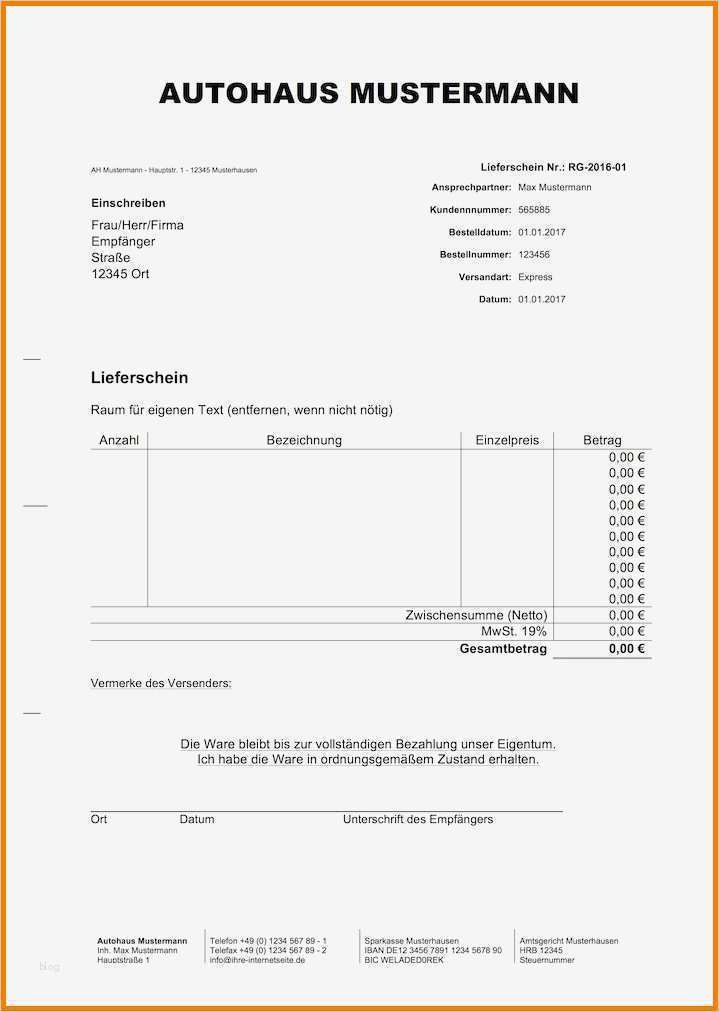 Schönste Lieferschein Vorlage