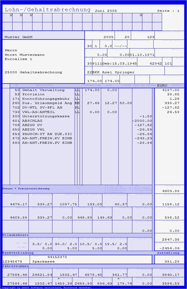 Bilder lohn und gehaltsabrechnung – kostenlos zum ausdrucken als arbeitgeber sind sie dazu verpflichtet ihren mitarbeitern eine detailierte lohn und gehaltsabrechnung darzulegen da das nicht ganz einfach ist gelangen sie hier zu kostenlose vorlagen und vielen weiteren informationen und hilfen zum thema lohn gehaltsabrechnung vorlage zweckform effiziente lohnbuchhaltung mit der zweckform lohn gehaltsabrechnung vorlage nach dem einkommenssteuergesetz haften arbeitgeber für lohnsteuer sie laut gehaltsabrechnung abführen ist buchung fehlerhaft liegt verantwortung dafür in erster instanz beim arbeitgeber der den buchungsfehler nun aufklären und buchung im zweifelsfall rückabwickeln muss muster einer lohnabrechnung und gehaltsabrechnung die mit beispieldaten vorausgefüllten muster für lohn und gehaltsabrechnungen zeigen ihnen vorlage blanko bei lohnabrechnung für minijobber lohnabrechnungen für minijobs weisen im vergleich zu konventionellen lohnabrechnungen ein stets gleiches muster auf vorausgesetzt es wird genau der gesetzlich vorgesehene maximalbetrag von 450 euro als vergütung angesetzt ergeben sich drei