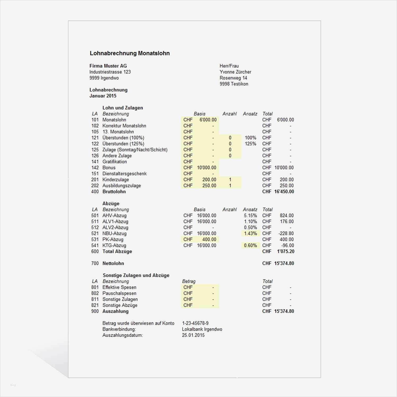 Bewundernswert Lohnabrechnung Vorlage 2017