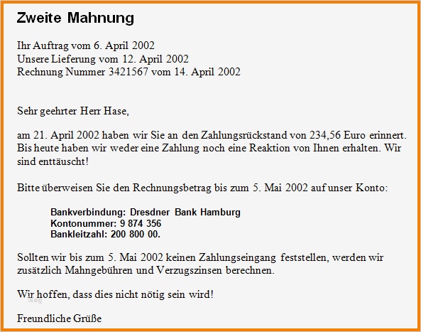 Hübsch Mahnschreiben Vorlage