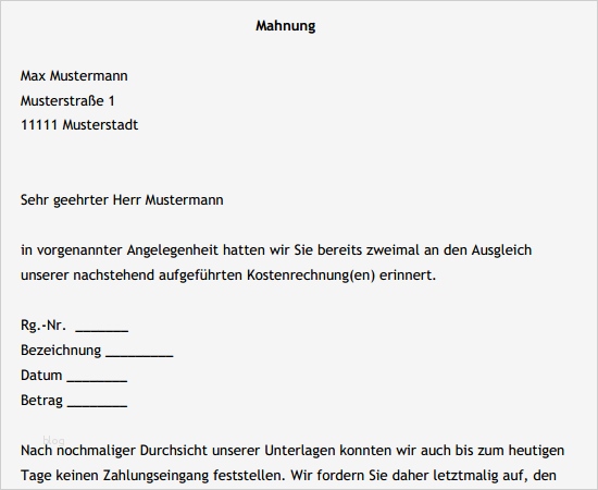 Großartig Mahnung Vorlage Kostenlos