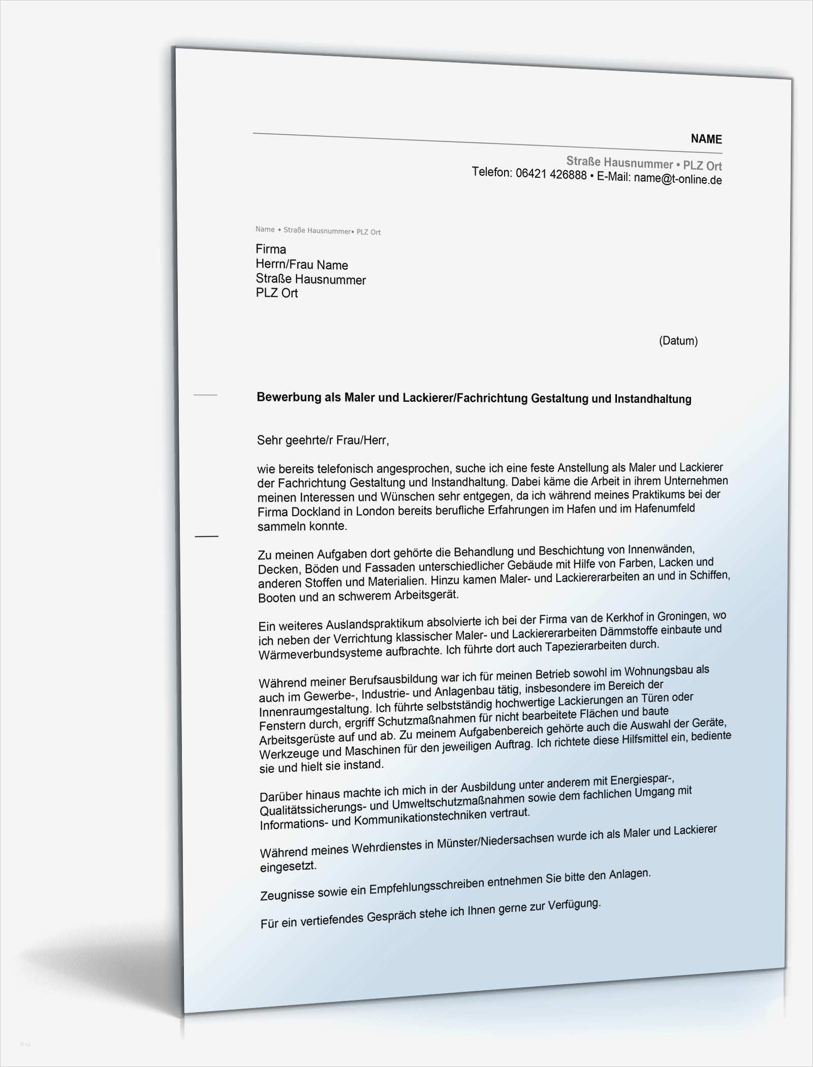 Maler Und Lackierer Bewerbung Vorlage Erstaunlich Anschreiben Bewerbung Maler