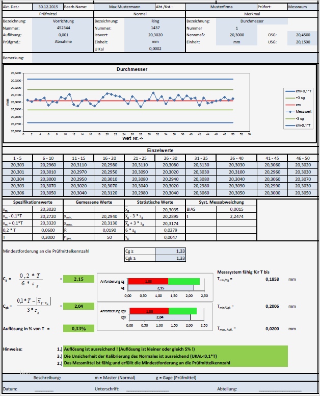 Maßnahmenplan Vorlage Pflege Süß Msa Messsystemanalyse Messmittelfähigkeit Mit Excel Vorlage