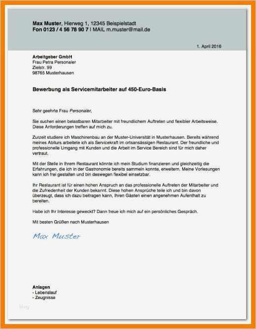 Minijob Abrechnung Vorlage 2017 Erstaunlich 11 Gastronomie Bewerbung