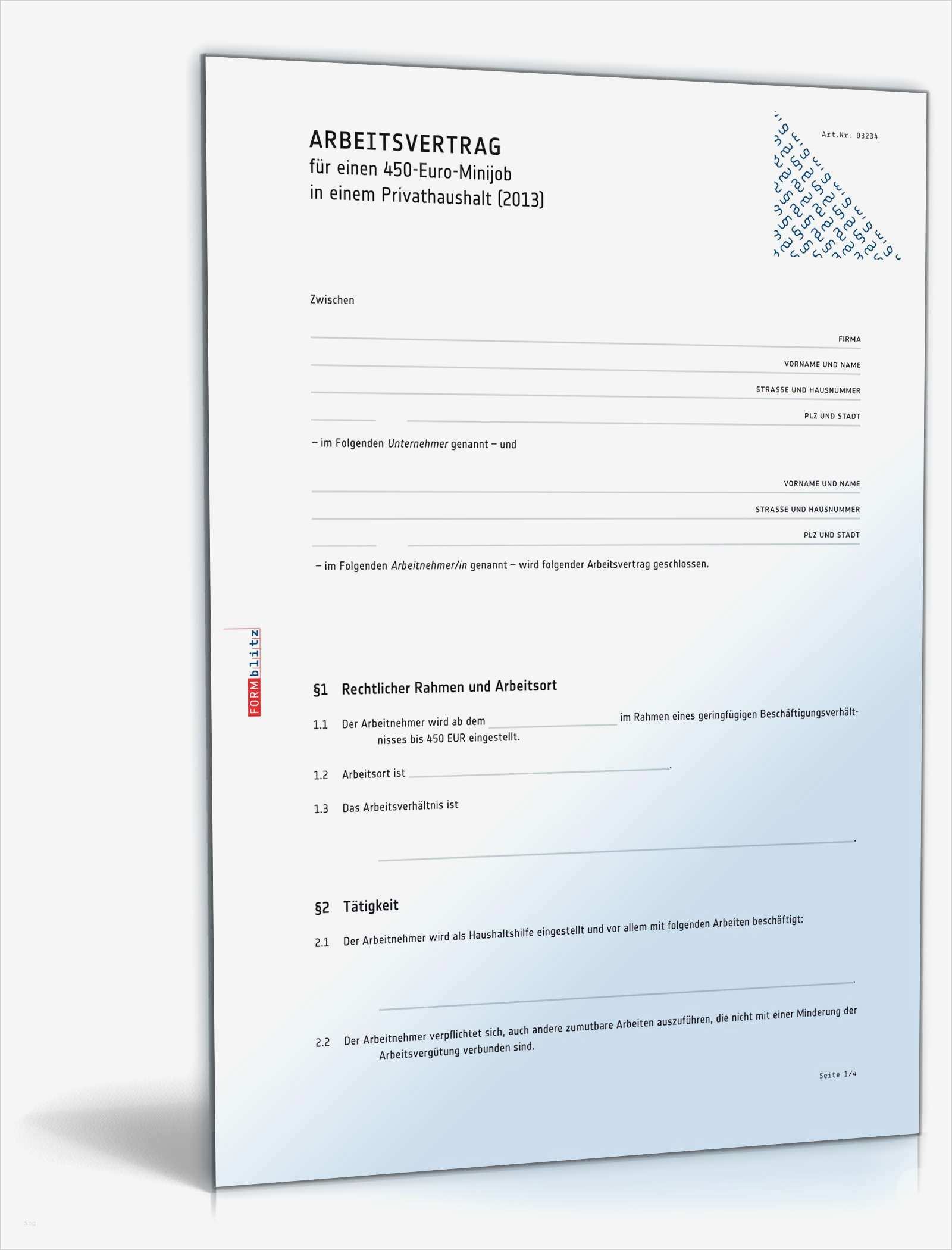 Minijob Beim Arbeitgeber Melden Vorlage Schönste Arbeitsvertrag Minijob Privathaushalt
