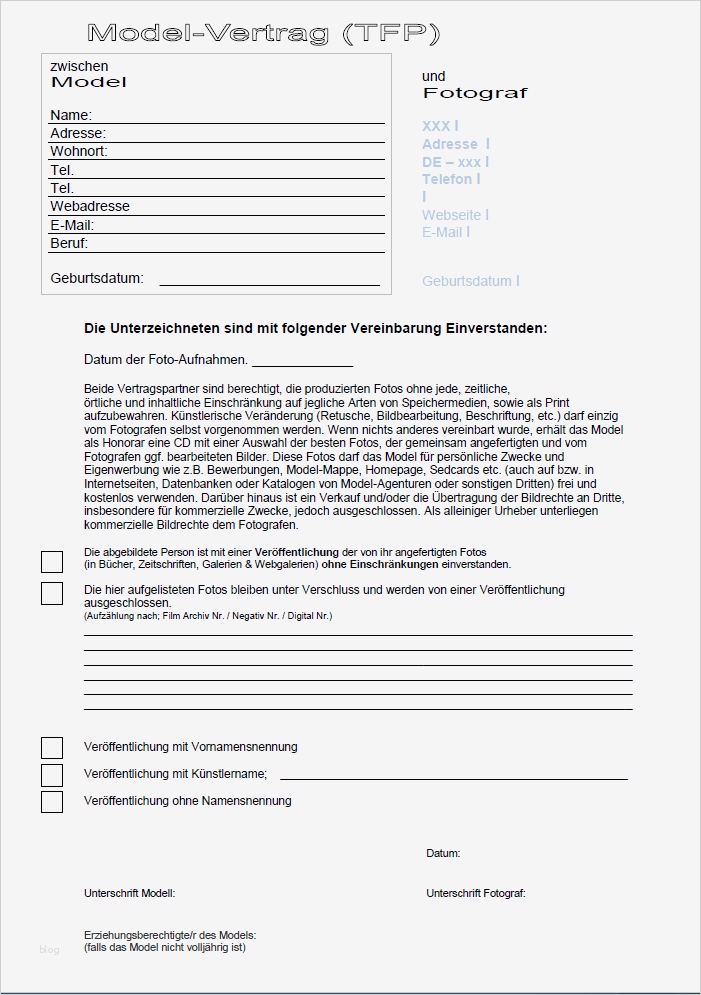 Modelvertrag Vorlage Hübsch Tfp Vertrag Zwischen Model Fotograf Und Visa