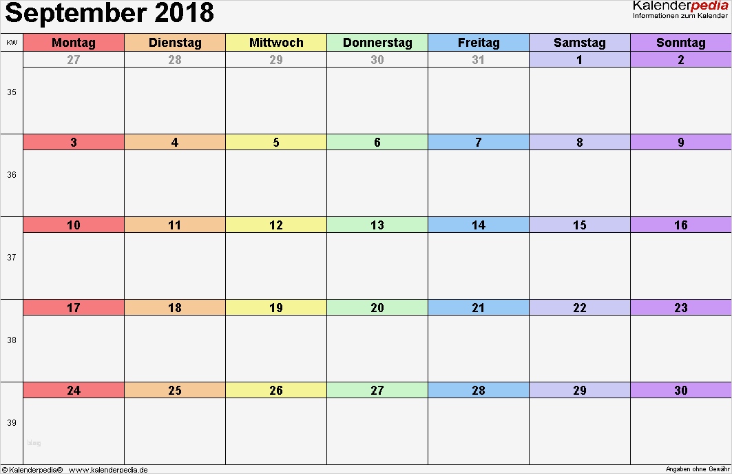 Monatskalender 2018 Vorlage Großartig Kalender September 2018 Als Pdf Vorlagen