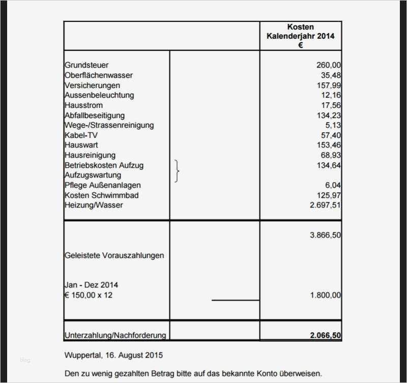 Schönste Nebenkostenabrechnung Mieter Vorlage