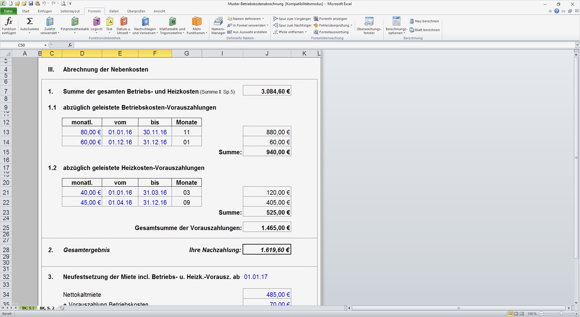 Inspiration Nebenkostenabrechnung Muster Vorlage