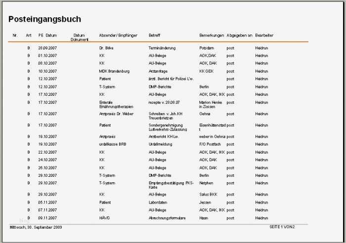 Elegant Posteingangsbuch Excel Vorlage